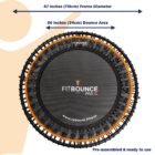 The jumping surface is 8in bigger than the standard Fit Bounce rebounder. This is great for those who are tall (over 6') and for use with Flexi Bounce Therapy where it might be necessary for a therapist to be on the mat to provide physical support to their client.