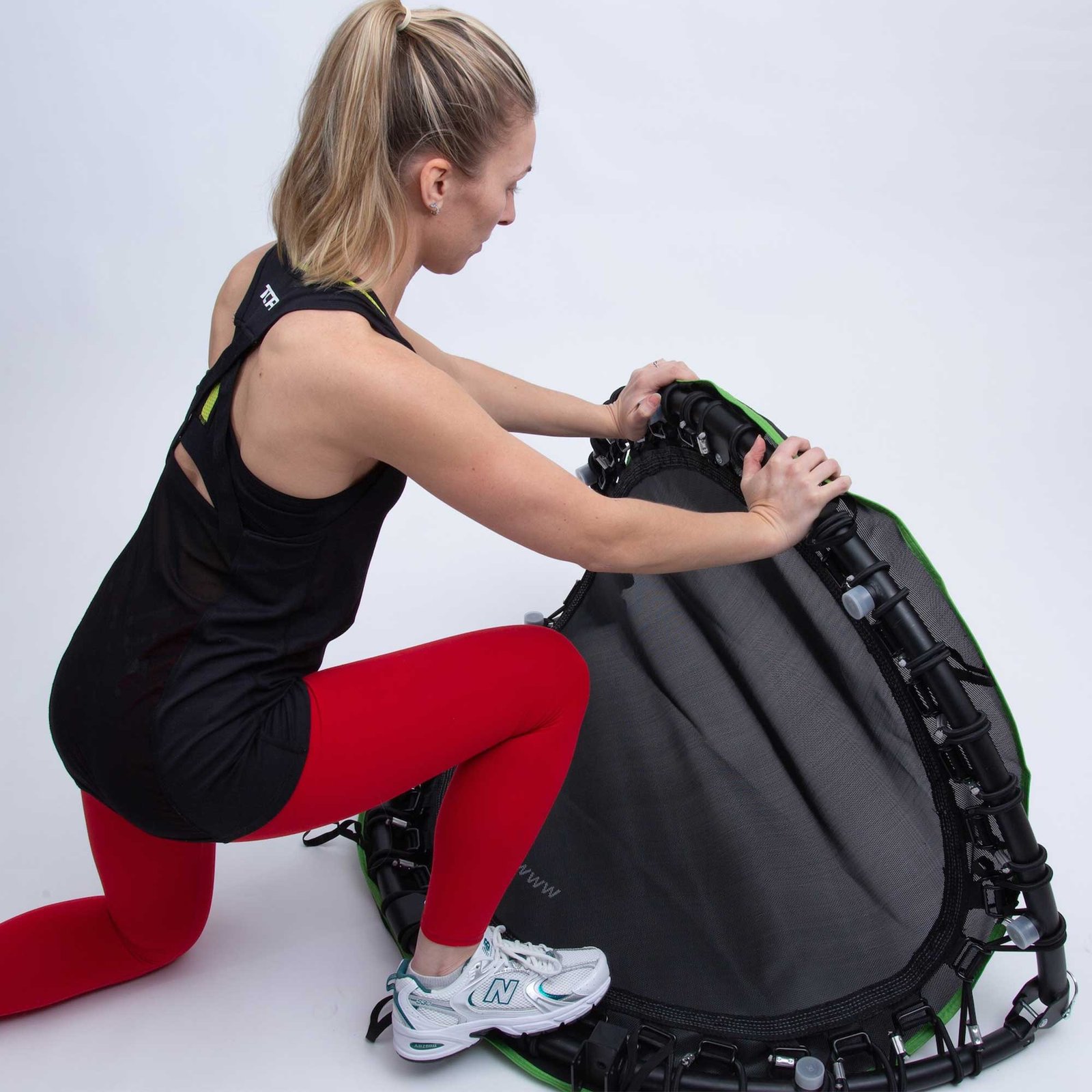 - Kind to joints due to the low impact nature of the surface of the rebounder mat and the high quality spring/bungee design